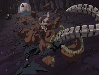 Chiyo chakra fonalakkal tveszi az irnytst Sakura teste felett s megemeli az erejt, majd gy tbbszr megte az ellenfelt, akinek ezzel darabokra tri a vdelmt.