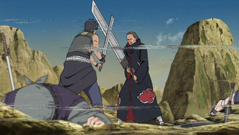 Deidara robban aknkat hoz ltre, amiket Obito els a fld al, majd az ellenfl rlp, s felrobban.