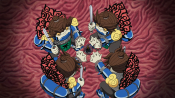 Shima s Fukasaku az idzjk vllaira l, majd hrman sszehangolva tmadjk az ellenfelket.