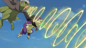 Miutn a hasznl megidzte Shimt s Fukasakut elkezdenek brekegni, gy ltrehozva egy elviselhetetlenl magas frekvencij hanghullmot, ami megbntja az ellenfelet.