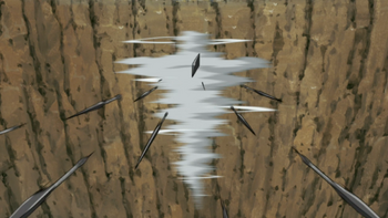 A hasznl a chakrjval lebegteti a fegyvereit, majd egyszerre kilvi ket, ezt a jutsut ssze lehet ktni a Bb Technikval.