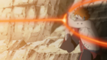 A hasznl aktivlja a Kilencfark Chakra Mdjt, majd ltrehoz egy bijuu chakrval feltlttt Rasengant, ami egy kisebb Bijuu Bombra hasonlt.