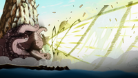 A Bijuu a szjba srti a chakrjt, majd kilvi azt egy pusztt lvedk formjban.
