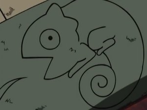 Egy emberev ris kamleon, ami rendkvl okos s trkkjeivel szinte brkit ki tud cselezni.