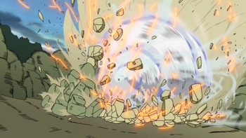 A Ngy Lb Jutsut hasznlva a hasznl a kutyjval egytt vad forgsba kezd, s sztfrszel mindent maga kzelben.
