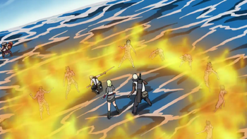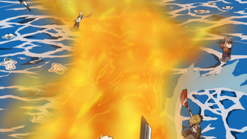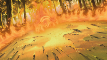 Miutn kilttnk egy tz elem jutsut, a keletkez lngokbl egy pk jn ltre, ami folyamatos tmadsokba kezd.