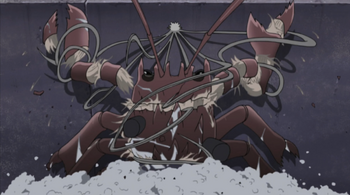 A fldbl egy nagy mret vasmacskt idznk meg,ami krbezrja a clpontot.Ezutn lncok tekerednek a macska kr s visszamegy a fld al az ldozatval egytt.