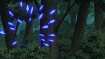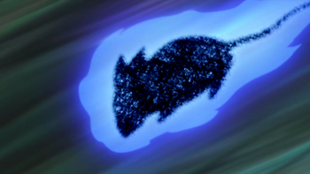 Nii Yugito egy egr formly hajcsomt dob el, ami fellobban, s becsapdik az ellenfelbe.